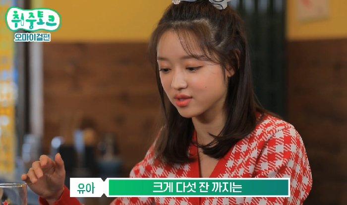 이에 유아는 “저도 술을 잘 마시는 편 같아요”라며 “크게 다섯 잔 까지는 편하게 마셨다”고 밝혔다,