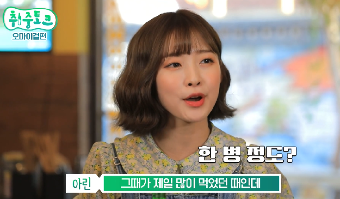 아린은 “저번에 친구들이랑 한번 먹어봤는데 그때가 제일 많이 먹은 때 인데 한 병?”이라 전했다.