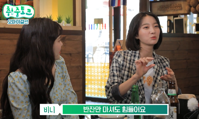 이어 비니는 “몸에서 안 받아서 정신력으로 버티는 스타일이에요”라며 “반 잔만 마셔도 힘들어요”라고 답했다.