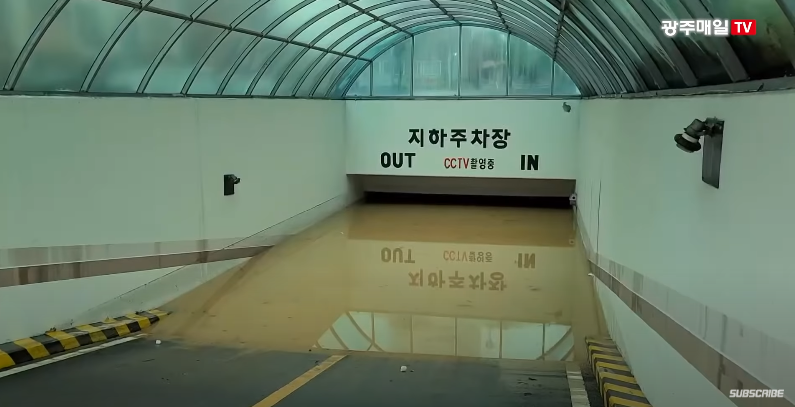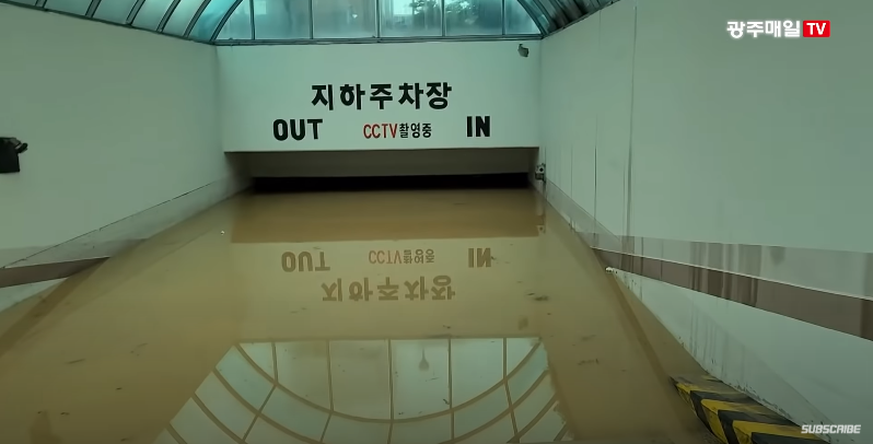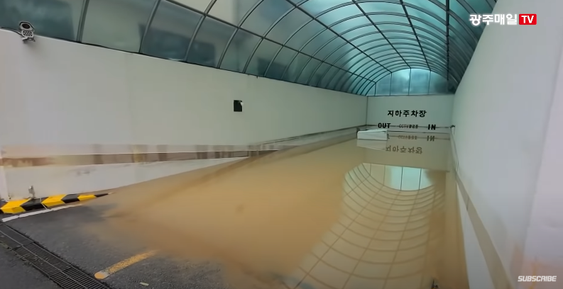 사진 속에는 지하주차장 입구까지 물이 가득 차버렸다.
