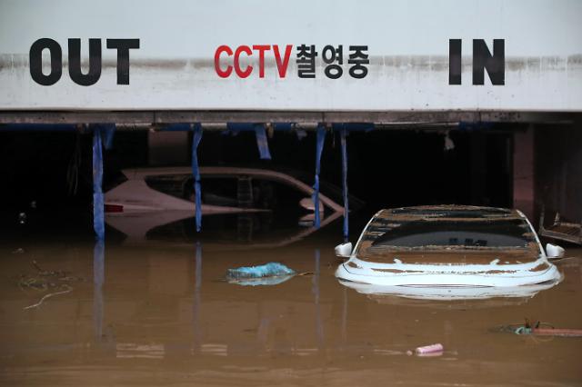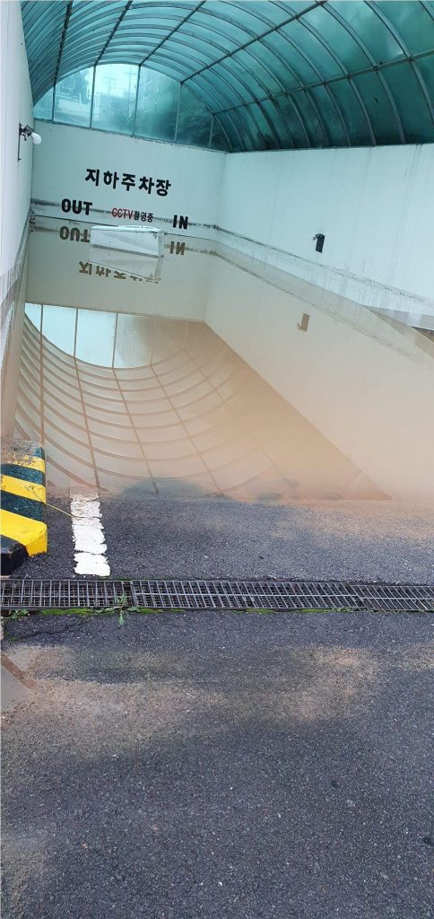 게시물에는 지하주차장 입구가 빗물로 가득찬 모습이 보였다.