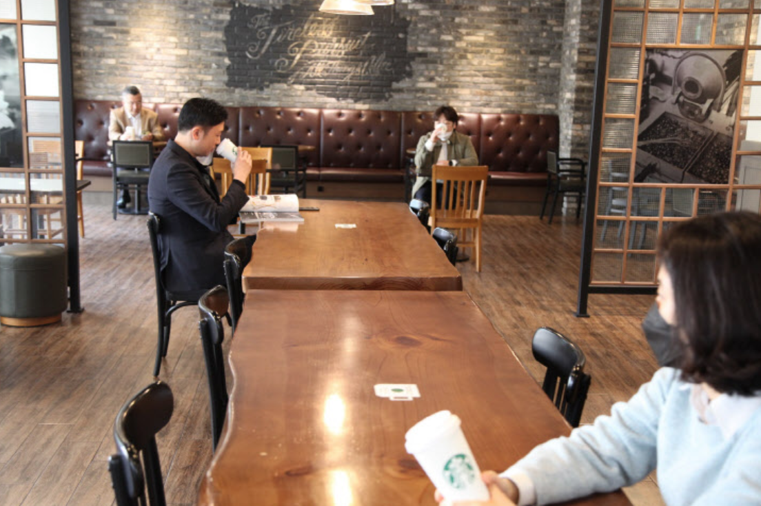 스타벅스는 “테이블 간격을 1~2m 간격이 유지될 수 있도록 재배치하고 가급적 2인석 위주로 배치한다”라며 “여러 명이 함께 이용할 수 있는 커뮤니티 테이블과 스탠드업 테이블 좌석은 축소 운영한다”라고 설명했다.