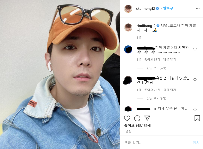 지난 18일 이홍기는 인스타그램에 셀카를 찍어 올리며 “제발 코로나 진짜 제발 사라져라”라며 간절한 글을 남겼다.