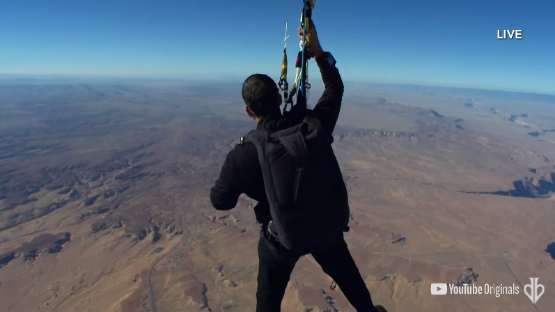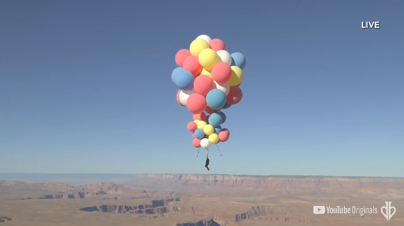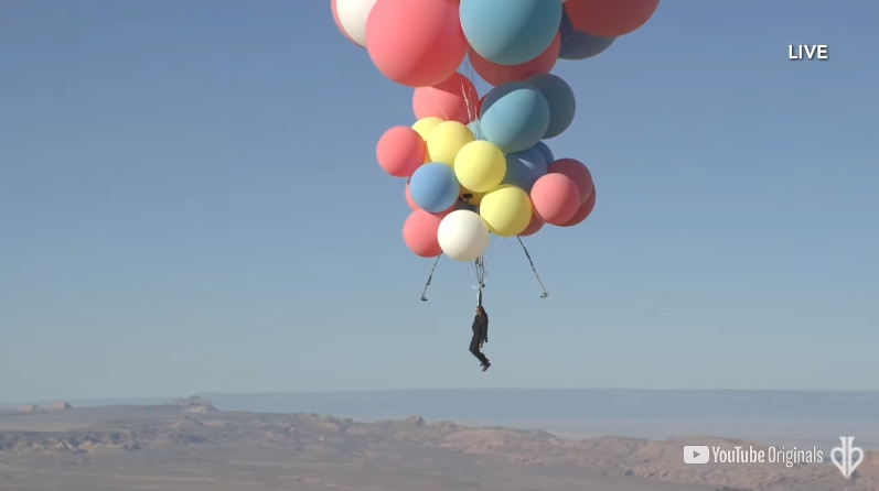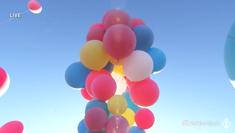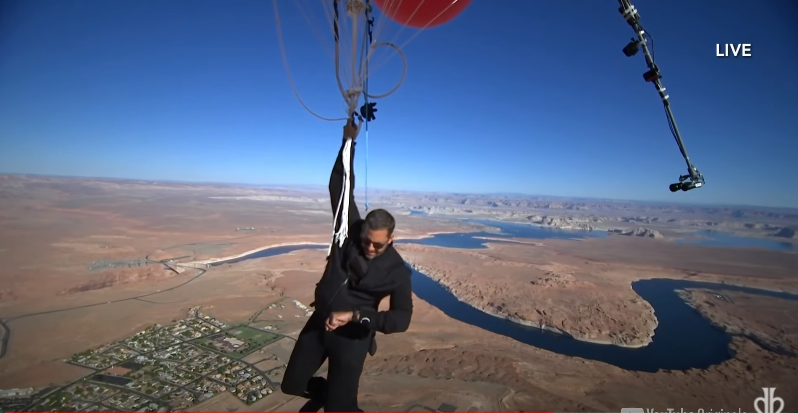 블레인은 풍선을 타고 날아 올랐다가 착륙하기까지의 약 3시간 가량을 유튜브로 라이브로 진행해보여줬다.
