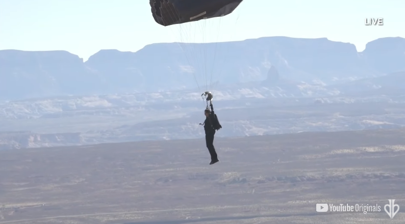 목표에 이른 뒤 호흡이 어려워지자 블레인은 스카이다이빙으로 지상으로 돌아왔다.