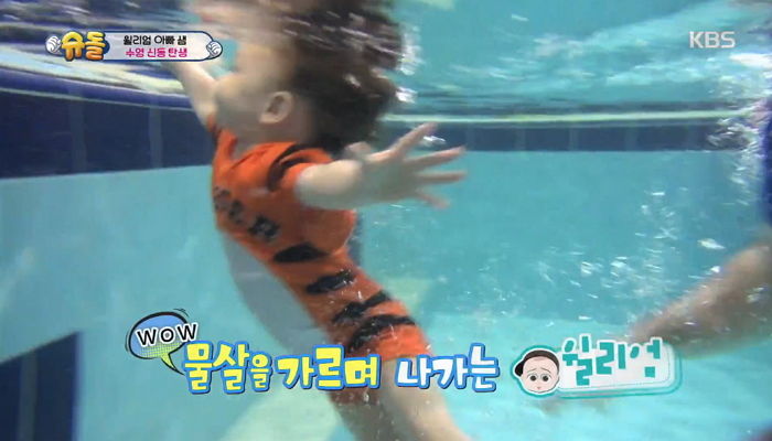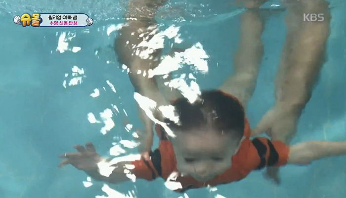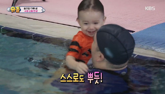 지난 4일 KBS 2TV ‘해피선데이-슈퍼맨이 돌아왔다’에서는 아빠와 함께 어린이 수영교실이에 처음 참석한 윌리엄의 모습이 방송됐다.