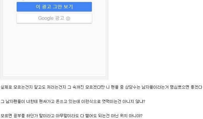 또한 아이린에게 분노한 한 팬은 “아이린 팬 중 상당수는 남자들이라는 거 명심했으면 좋겠다”며 “남자 팬들이 아이린에게 돈 쓰는데 이런 식으로 엿 먹이는 것은 아니지 않냐”라고 악플을 달았다.