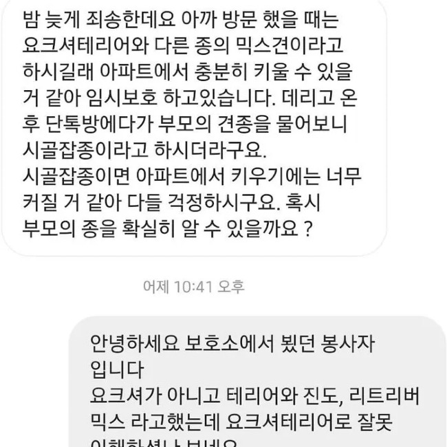 “데리고 온 뒤 사람들에게 아이비 부모의 견종을 물어봤는데 시골 잡종이라고 하더라. 아파트에서 키우기에는 시골잡종은 아파트에서 키우기 어려울 것 같다”는 내용이었다.