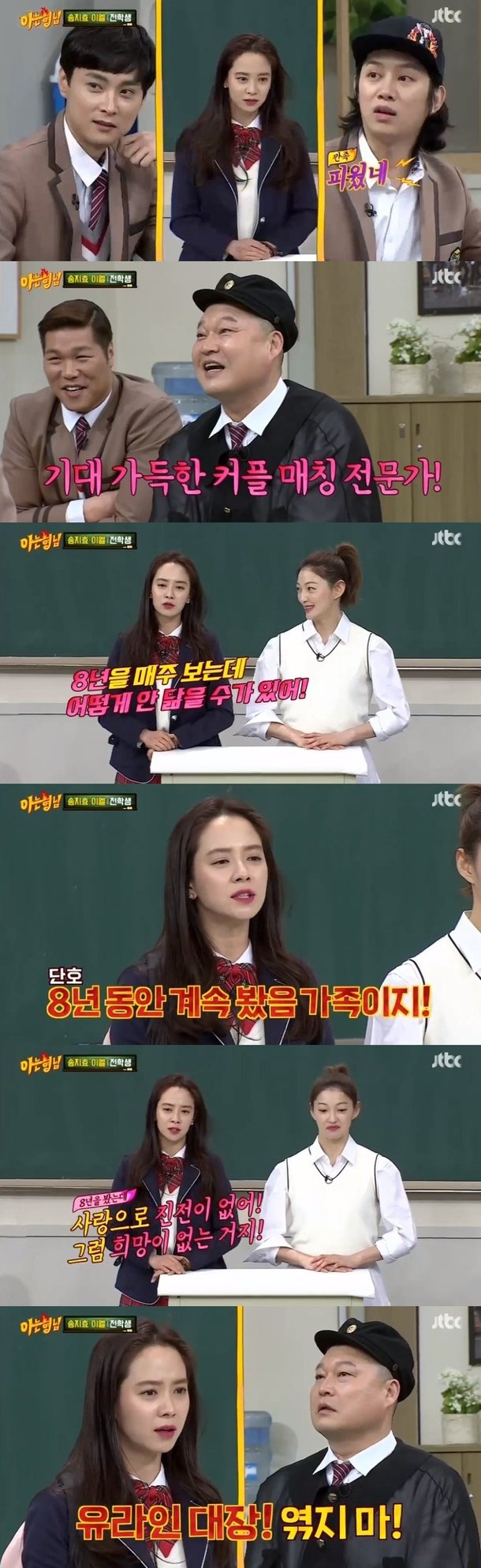 그러자 송지효는 “8년을 매주 보는데 어떻게 안 닮아갈 수 있냐. 8년 봤으면 가족이지. 사랑으로 진전이 없으면 희망이 없는 것”이라면서 “자꾸 엮지마 호동아”라고 쐐기를 박아버렸다.