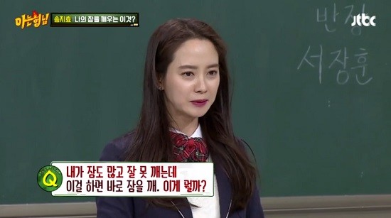 24일 JTBC 예능프로그램 ‘아는 형님’에서 강호동이 송지효의 말투에서 김종국이 보인다며 ‘나 혼자 산다’에서 함께 출연했다 연인 관계로 발전한 전현무와 한혜진 케이스를 언급하자, 송지효는 당황하는 모습을 보였다.