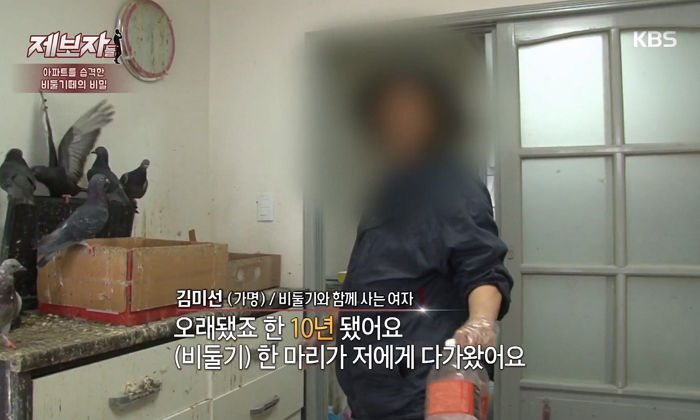 비둘기떼가 드나드는 집 주인은 김미선(가명) 씨. 주민들은 2년 전 김미선 씨가 아파트에 이사 온 뒤로부터 집에서 비둘기와 함께 살고 있다고 주장할 정도이다.