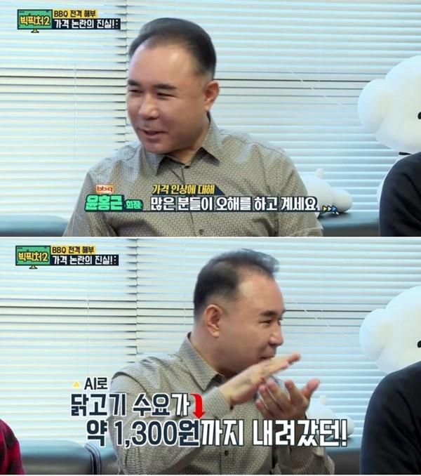 제너시스BBQ 그룹 윤홍근 회장이 ‘치킨 가격’ 인상에 대해 해명했하다 하하와 논쟁을 벌였다.