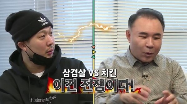 두 사람의 치킨 VS 삼겹살 논쟁에 패널들은 웃음을 참지 못했고, 결국 김종국이 “회사와 고객의 입장 차이인 것 같다”고 말하며 상황을 정리했다.