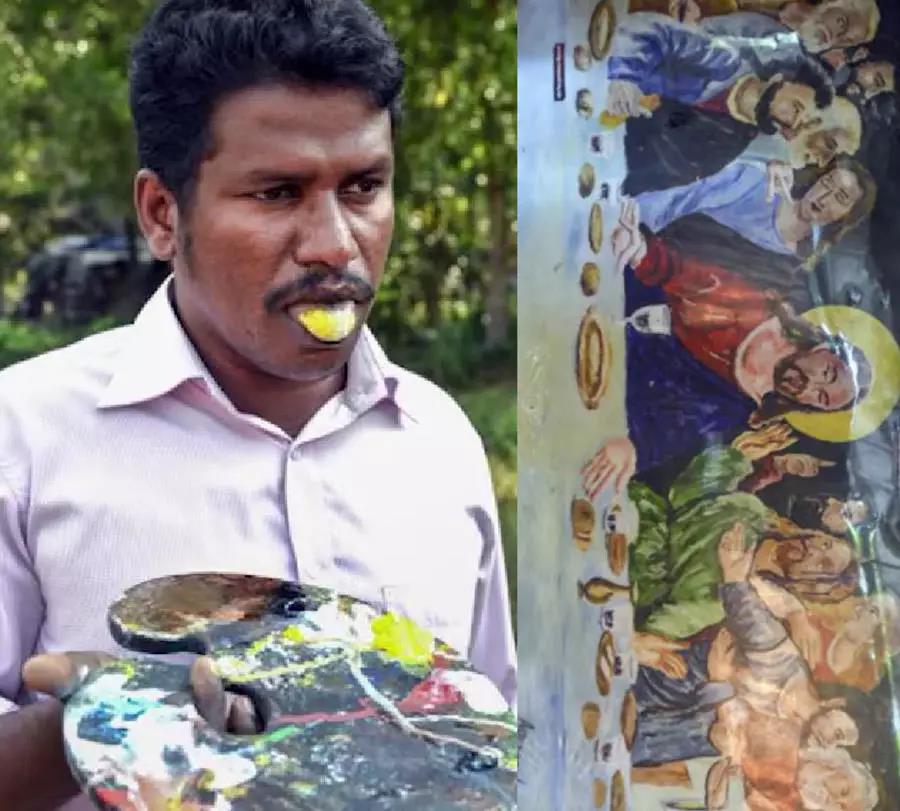 인도에 사는 이 남자의 직업은 화가인데, 6년 전부터 혀로 손 외에 코, 턱, 발 등으로 그림을 그리기 시작했다고 한다.