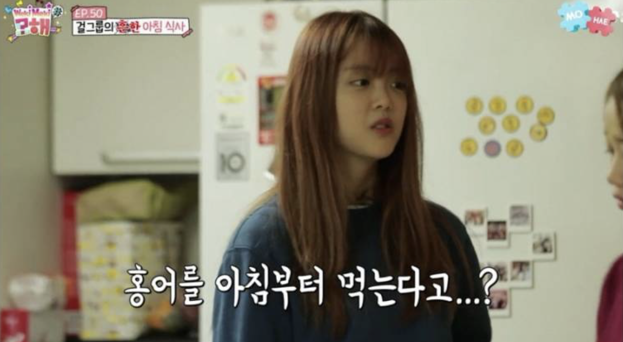 들뜬 모습으로 신나게 장을 본 유정은 집으로 돌아왔고, 다른 멤버들은 아침부터 홍어를 먹는다는 사실과 홍어 냄새에 적잖이 놀란 모습이다.