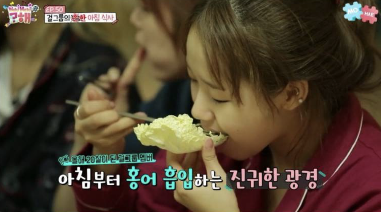 해당 방송에서는 멤버들의 자연스러운 모습을 보여줬는데, 그중 멤버 최유정의 아침 식단이 공개된 것이다.