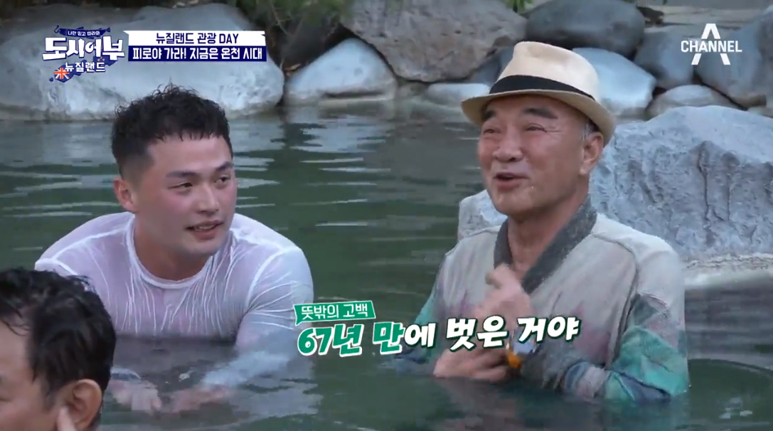 이경규와 마이크로닷은 뜨듯한 물에 몸을 담그며 온천을 즐겼지만, 이덕화는 모자가 벗겨질까 걱정이 돼 들어가지 않았다.