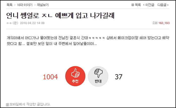 언니의 행보(?)를 응원하는 것으로 보아 많은 이들이 이 사연에 공감했던 것으로 보인다.