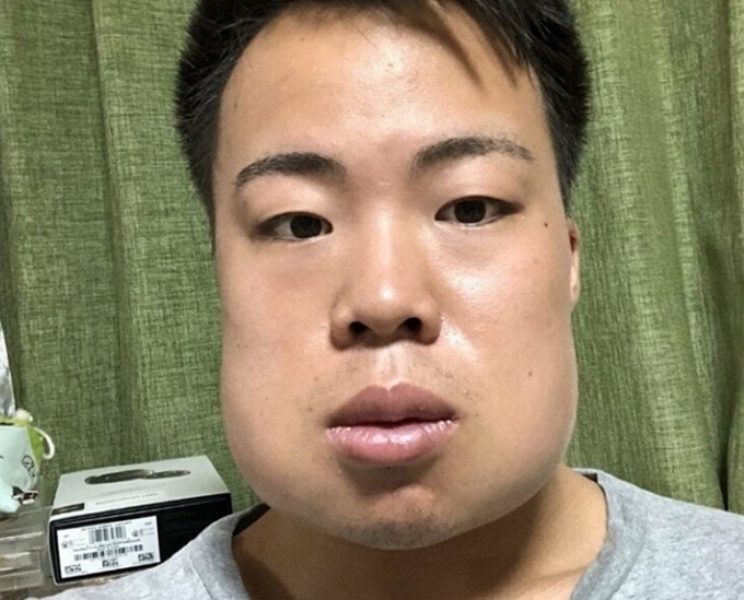 그 결과는 처참했는데 양쪽 볼이 퉁퉁 부어 마치 벌에 쏘인 것처럼 부풀어 있는 것을 확인할 수 있다.