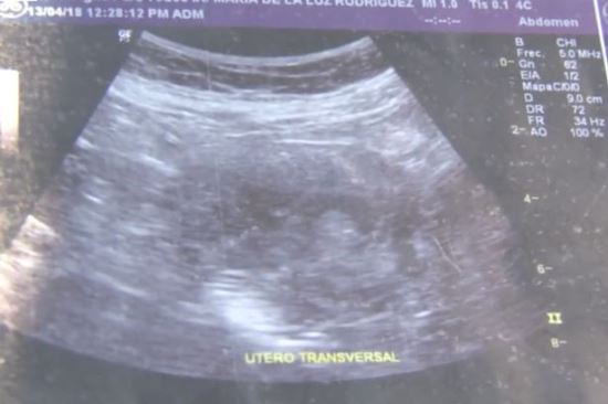 그는 초음파 검사를 실시했고 임신을 처음 확인했다.
