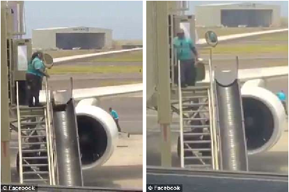 공항에서 비행기 탑승을 기다리던 한 승객은 우연히 항공사 직원이 비행기에서 수하물을 옮기는 모습을 보게 됐다.
