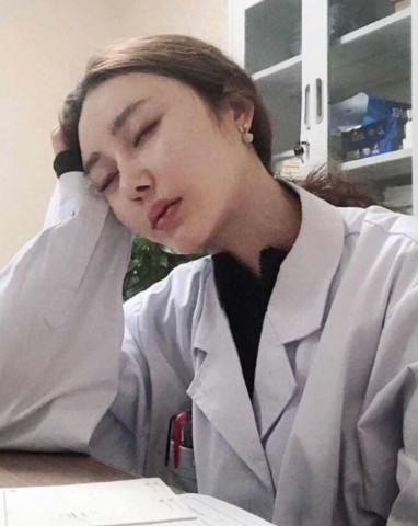 가운을 입고 있는 여의사의 모습은 일반인과 그렇게 다르게 보이지 않는 평범한 여성으로 보인다.