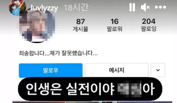 한편, 악플러는 네티즌들의 비난이 이어지자 결국 사과를 한 후 악플러는 현재 인스타그램 계정을 비공개로 전환한 상태다.