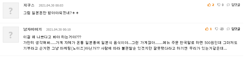 이를 본 온라인 커뮤니티 네티즌들은 “아 다르고 어 다르다고, 그냥 500원씩 할인을 해준다고 쓰여 있었으면 지금과 같은 이슈는 안되었을 것 같습니다. 저건 선 넘었네요.”, “이걸 왜 나쁘게 보는 거죠? 일종의 마케팅 아닌가요? 여러분들 너무 예민하신 것 같아요.”라는 반응을 보였다.