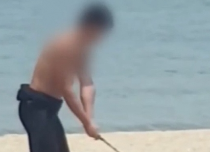 울산의 한 해수욕장에서 바다를 향해 골프 연습을 하는 남성의 모습이 담긴 영상이 공개돼 네티즌들 사이에서 논란이 사그라들지 않고 있다.