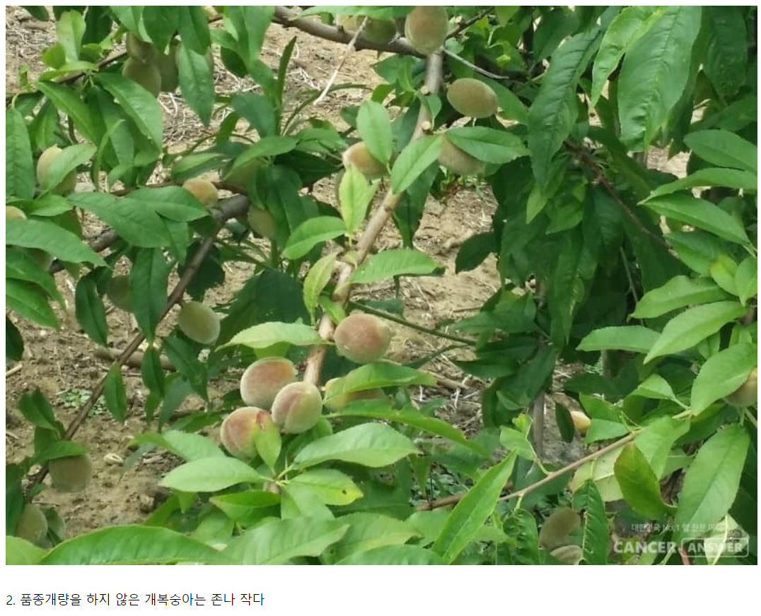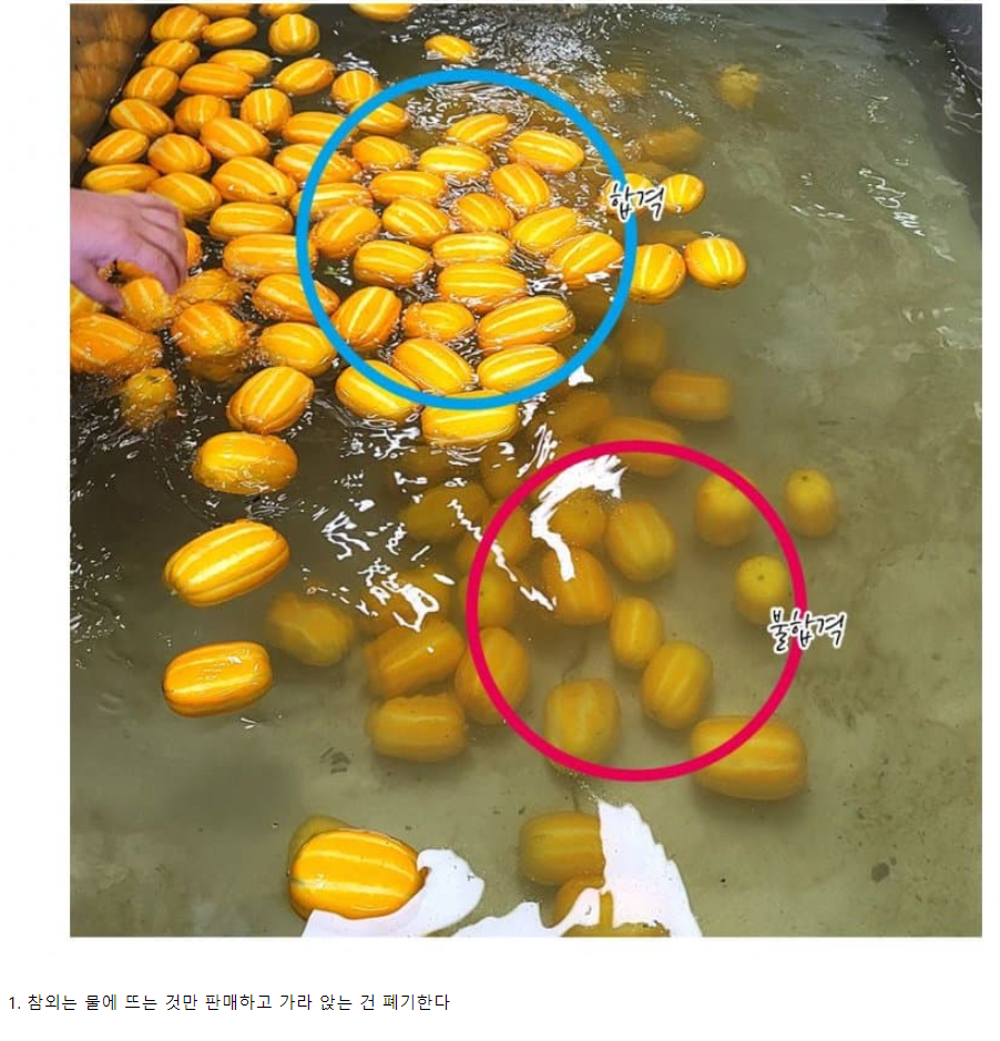 첫 번째로 참외는 물에 뜨는 것만 파냄하고 가라 앉는 건 폐기한다는 사실이 있고, 품종개량을 하지 않은 복숭아는 크기가 엄청 작다.