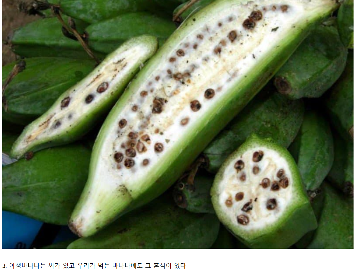 또한, 야생바나나는 씨가 있으며 우리가 먹는 바나나에도 그 흔적을 발견할 수 있다.