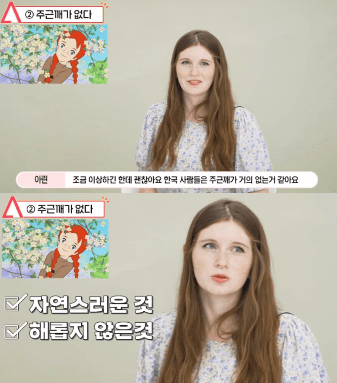 두 번째 칭찬은 “주근깨가 없다”는 점이었다. 외국인은 자신을 포함한 외국인들이 주근깨가 정말 많은데 유독 한국에 와서 더 부각되는 것 같다고 말했다.