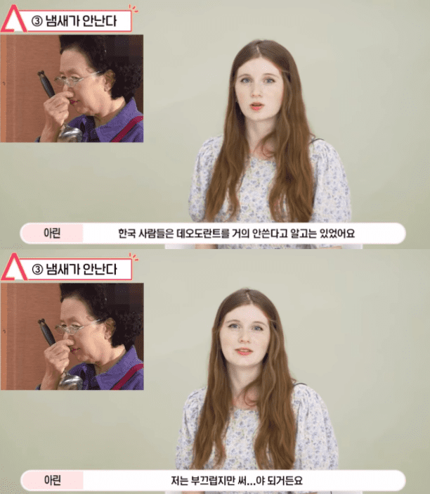 한국인들에겐 생소한 데오드란트를 매일 들고 다니는 것이 곤혹이라고 밝혔다.