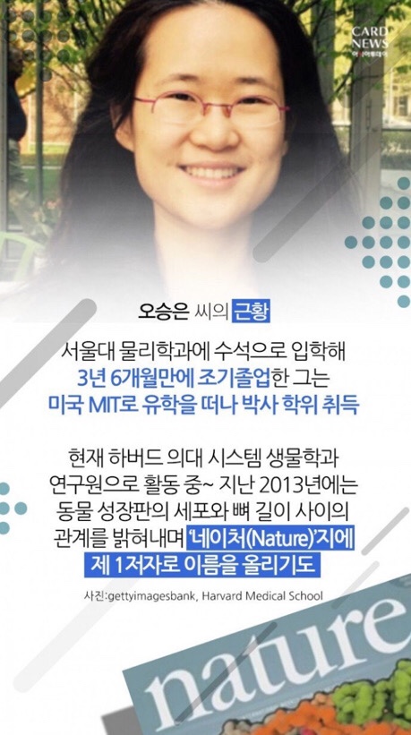 이후 오승은 씨는 서울대 물리학과에 수석으로 입학해 3년 6개월 만에 조기졸업한 그는 미국 MIT로 유학을 떠나 박사 학위를 취득했다.
