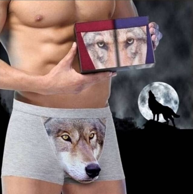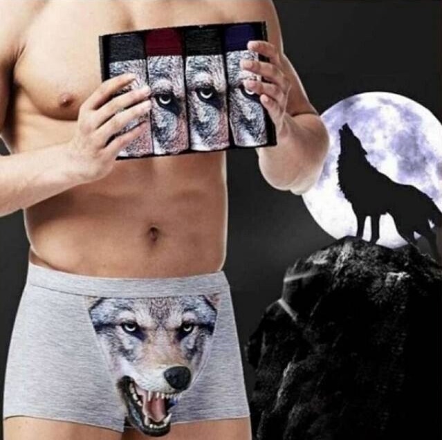 늑대팬티를 설명하자면, 늑대는 우리가 생각하기에 강렬한 이미지를 가지고 있어서 남자의 생식기 쪽에 프린팅이 있으니 남성성을 더욱 증가 시키는 속옷이다.