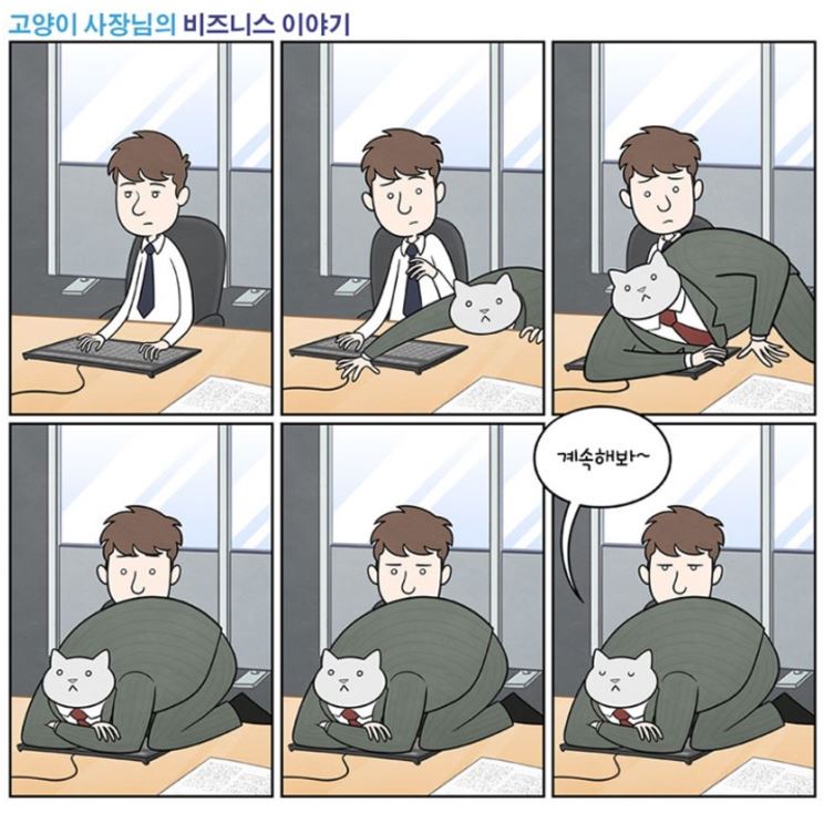 해당 게시글은 ‘만약 고양이가 사장님이라면?’이라는 가정을 한 뒤 그린 만화가 있었다.