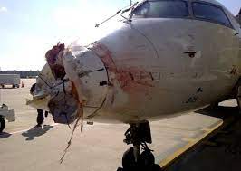 새와 비행기가 충돌하면 살짝 부딪히는 경우도 있지만, 반면에 비행기에 엄청난 충격이 남는 사고도 있다.