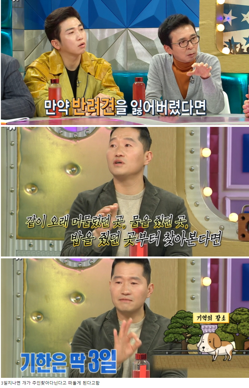 “만약 반려견을 잃어버렸다면 같이 오래 머물렀던 곳, 물을 줬던 곳, 밥을 줬던 곳부터 찾아봐야 합니다.”, “기한은 딱 3일 정도입니다.”라며 설명했다.