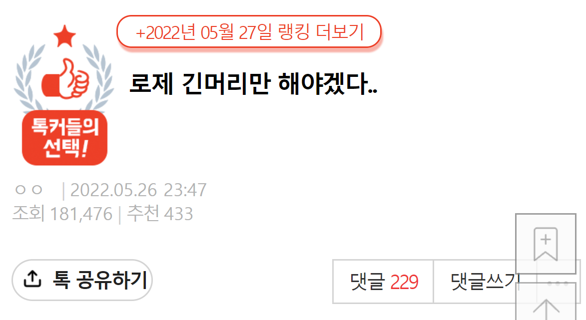 작성자 A씨는 “로제 제발 깻잎 앞머리 좀 그만해” 라는 제목의 글로 많은 이들의 궁금증을 증폭시켰다.