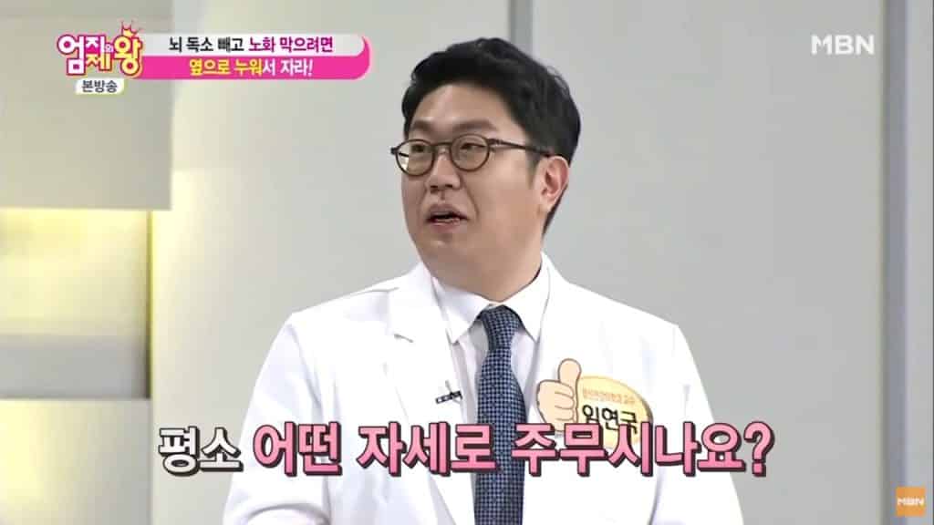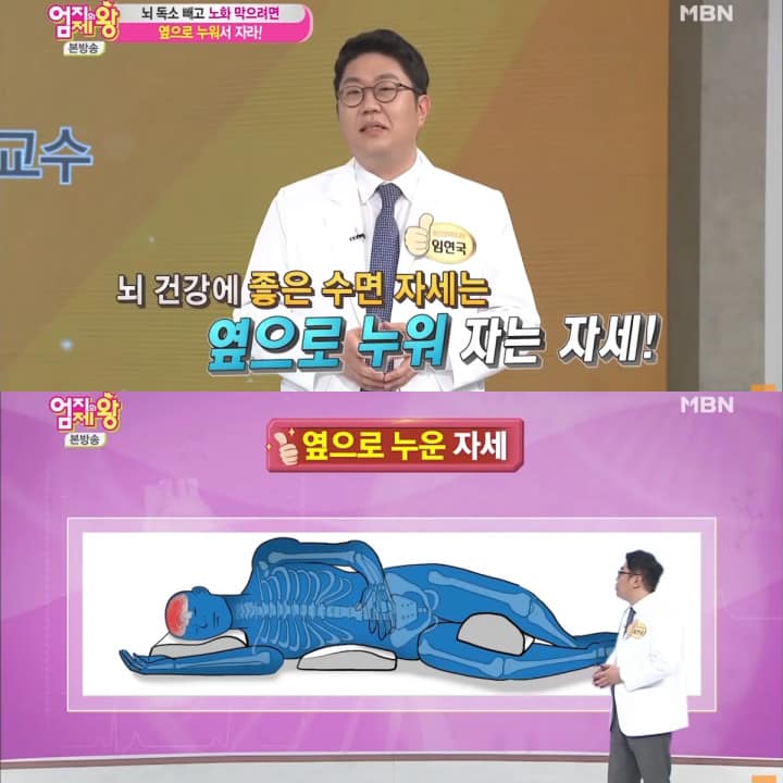 MBN ‘엄지의 제왕’에 임현국 정신건강의학과 교수가 출연하여 ‘이렇게’ 자기만 해도 뇌 속에 쌓인 독소를 빼 뇌의 노화를 막고 젊은 뇌로 살 수 있다고 뇌 건강에 좋은 수면 자세를 소개했다.