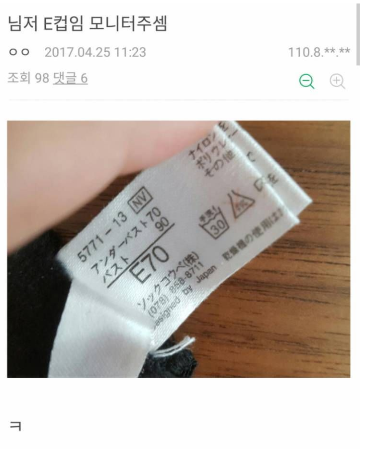 근데 진짜 갑자기 E컵이라며 글을 올리고 인증을 했다.