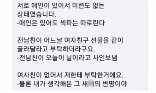 이렇게 현재 남자친구가 있으면서도 당당하게 행동을 했고 현 남자친구에게도 충격적인 문자를 남겼다.