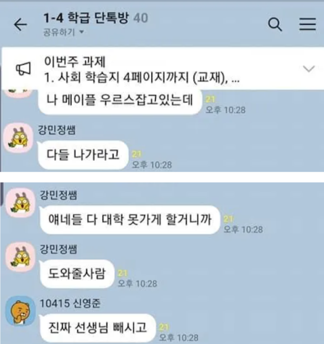 젊은 여자 담임이 남고 제자들이랑 단톡방 만들자 벌어진 일
