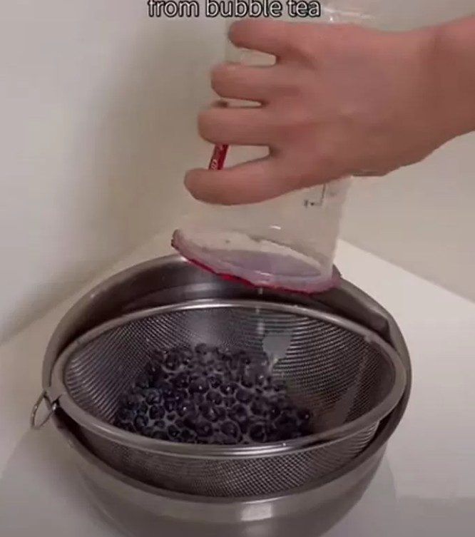 ‘버블티로 떡볶이 만들기 (생각보다 맛이)’라는 제목의 영상에서 랜덤토랑은 공차에서 주문한 밀크티의 펄을 따로 빼내 흐르는 물에 씻었다.