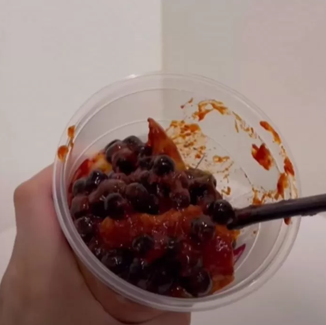 이후 해당 펄을 매콤달콤한 떡볶이 국물에 그대로 담아 국물을 졸였고, 떡 대신 버블티 펄을 넣은 떡볶이의 맛은 어떨까? 놀랍게도 일반 떡보다 훨씬 더 맛있다는 말이 나왔다.