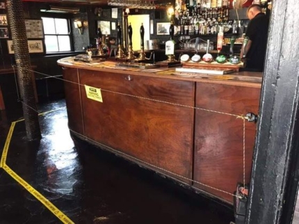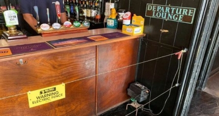 지난 12일(현지시간) 영국 매체 데일리메일 등 외신은 3개월 만에 영업을 재개한 한 술집이 최근 판매대 앞에 경고 문구를 붙이고 전기가 통하는 줄을 쳐놨다고 보도했다.