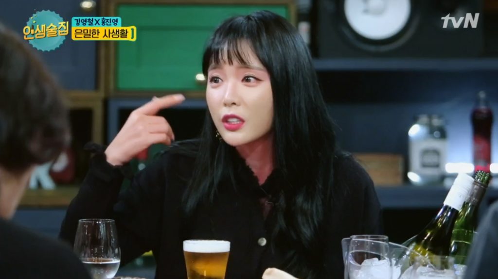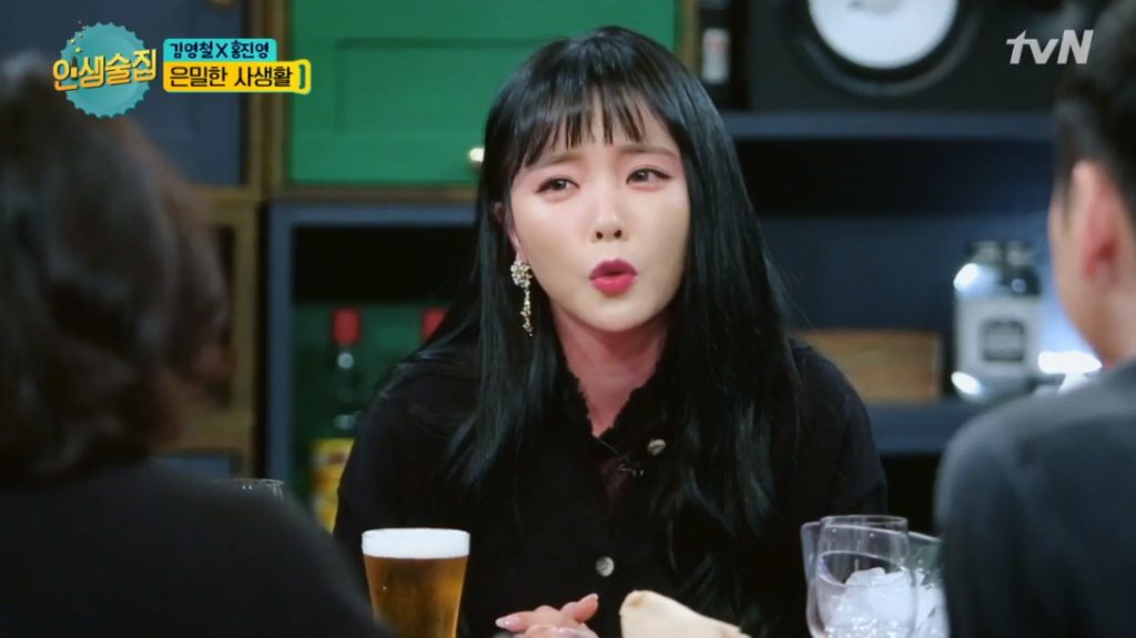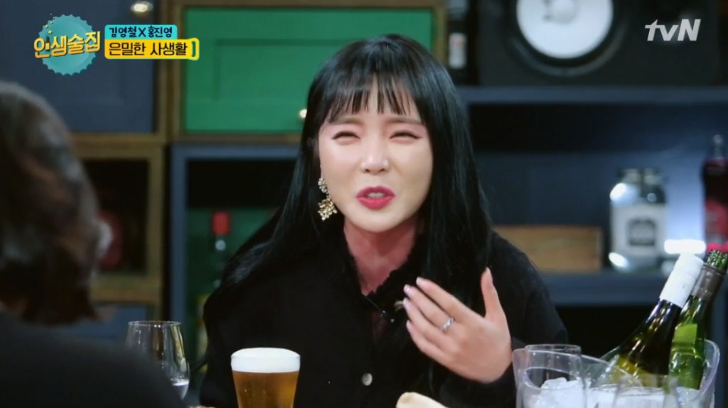 ‘인생술집’은 술을 마시면서 이야기를 나누는 프로그램으로, 이날 홍진영은 토크를 하는 중간중간 술을 마셨다.