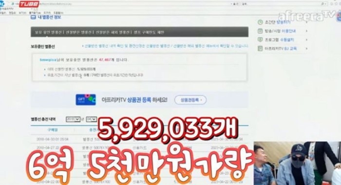 이어 그동안 A씨가 선물한 별풍선의 총 개수가 공개됐고, 그 수가 무려 592만 9,033개로 밝혀져 놀라움을 자아냈다.