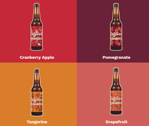 캘리포니아 드리밍은 석류, 자몽, 크랜베리 등 다양한 종류의 과일 맛이 있다.