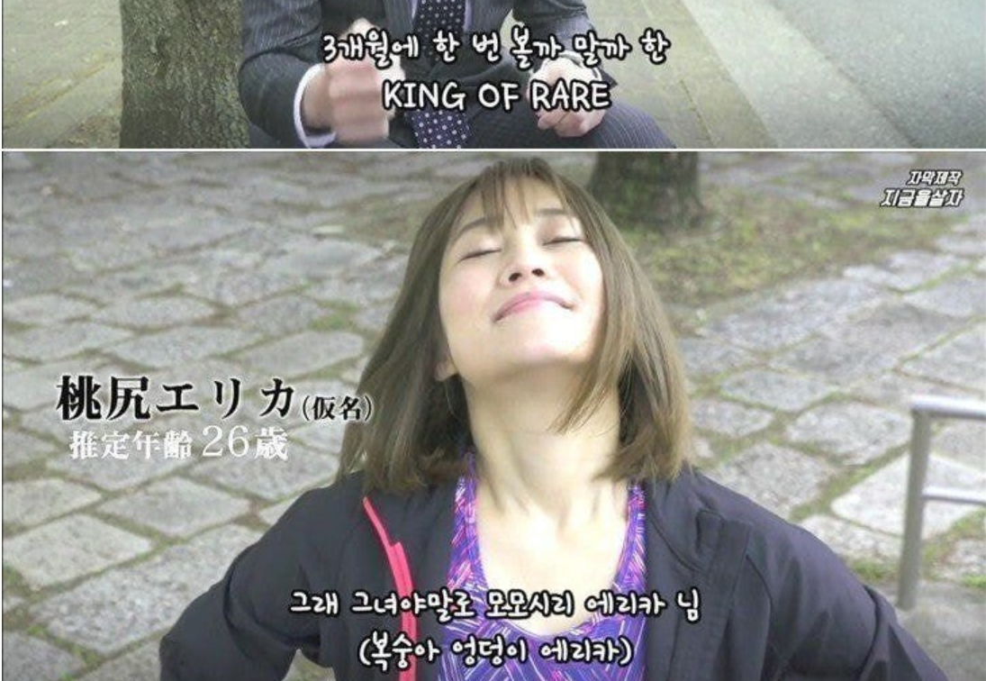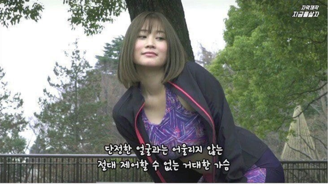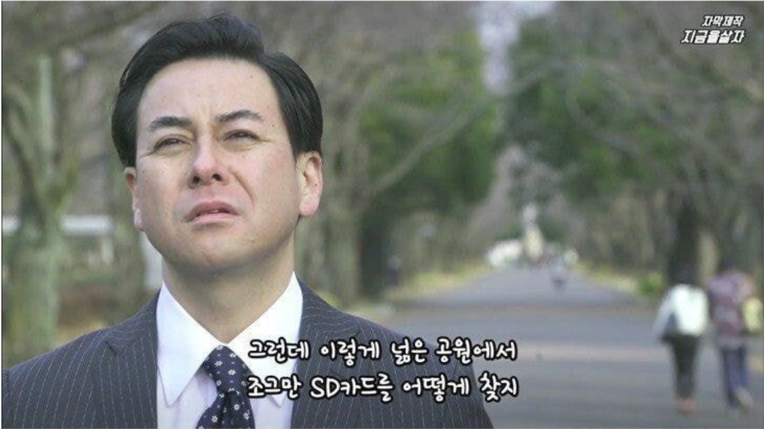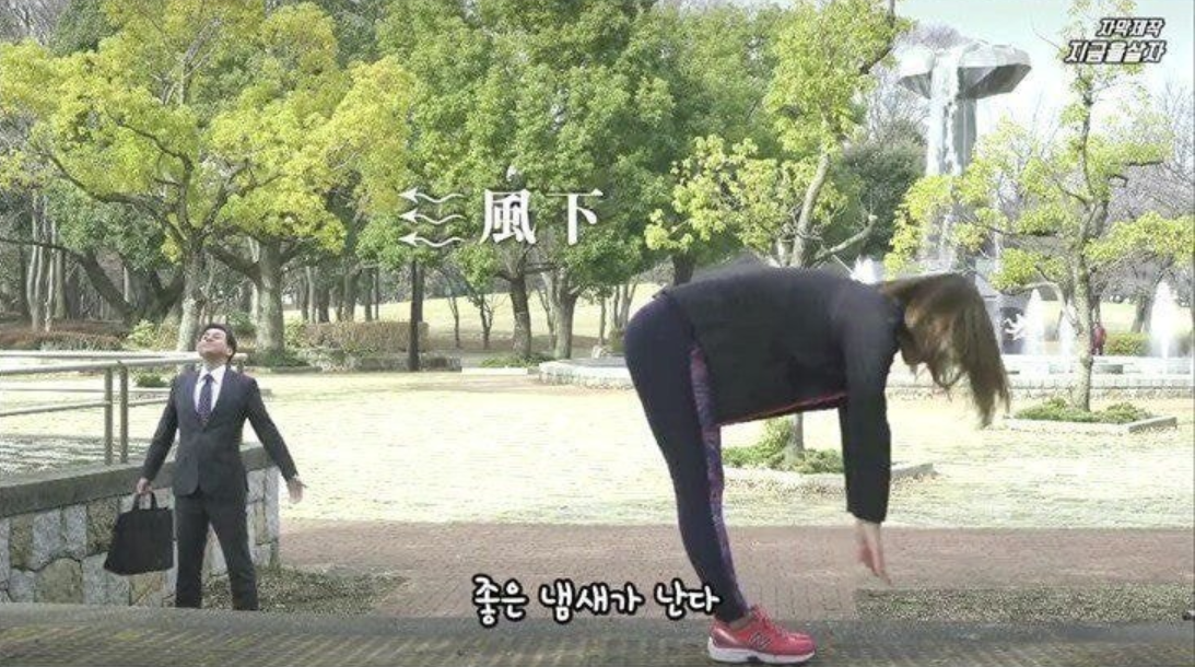 이 때 그의 옆에 한 일본 여성이 지나간다.